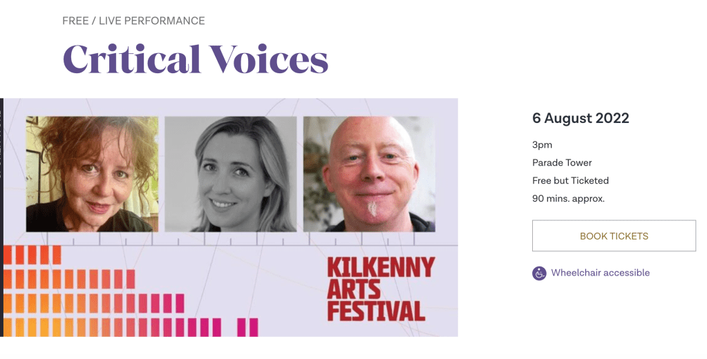 Critical Voices @ Kilkenny Arts Festival July 29, 2022July 26, 2022 For more information on this event, please click here. Share this: Click to share on X (Opens in new window) X Click to share on Facebook (Opens in new window) Facebook Like Loading...