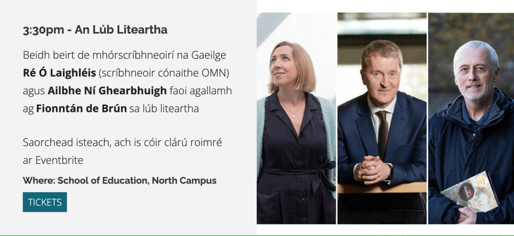 Posted in: Uncategorized | Tagged: An Lúb Liteartha, Arts and Minds festival, Fionntán de Brún, Ollscoil Mhá Nuad, Ré Ó Laighléis